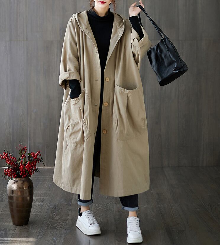 2021秋冬新作 トレンド レディース トレンチ コート カジュアル ロング フードつき 大きめ